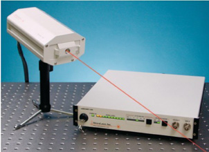 发出单束激光,激光器包括测试红外激光二极管、瞄准红色激光二极管、声光调节器和高灵敏度的成像检波器。